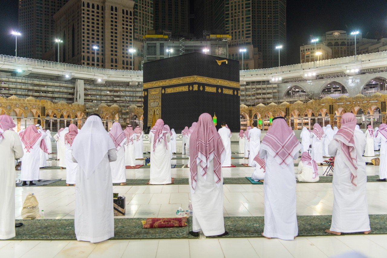وأدى صلاة القيام عدد محدود من العاملين في بيت الله الحرام مع تطبيق الإجراءات الاحترازية والحفاظ على التباعد أثناء الصلاة؛ للوقاية من فيروس كورونا الجديد.