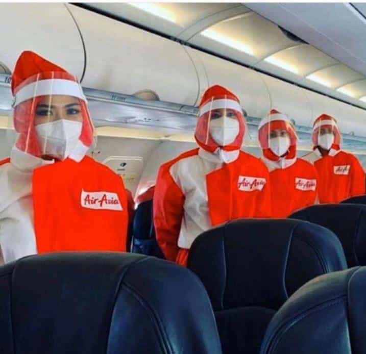 كشفت الخطوط الجوية الآسيوية النقاب عن زي طاقم المضيفين الجديد، والذي يتضمن قناعًا طبيًا وواقيًا وثوبًا وقائيًا كاملًا، إذ سيقدم الضيافة للركاب مضيفون يرتدون ملابس واقية من رؤوسهم حتى أخمص القدمين في معدات الحماية الشخصية.