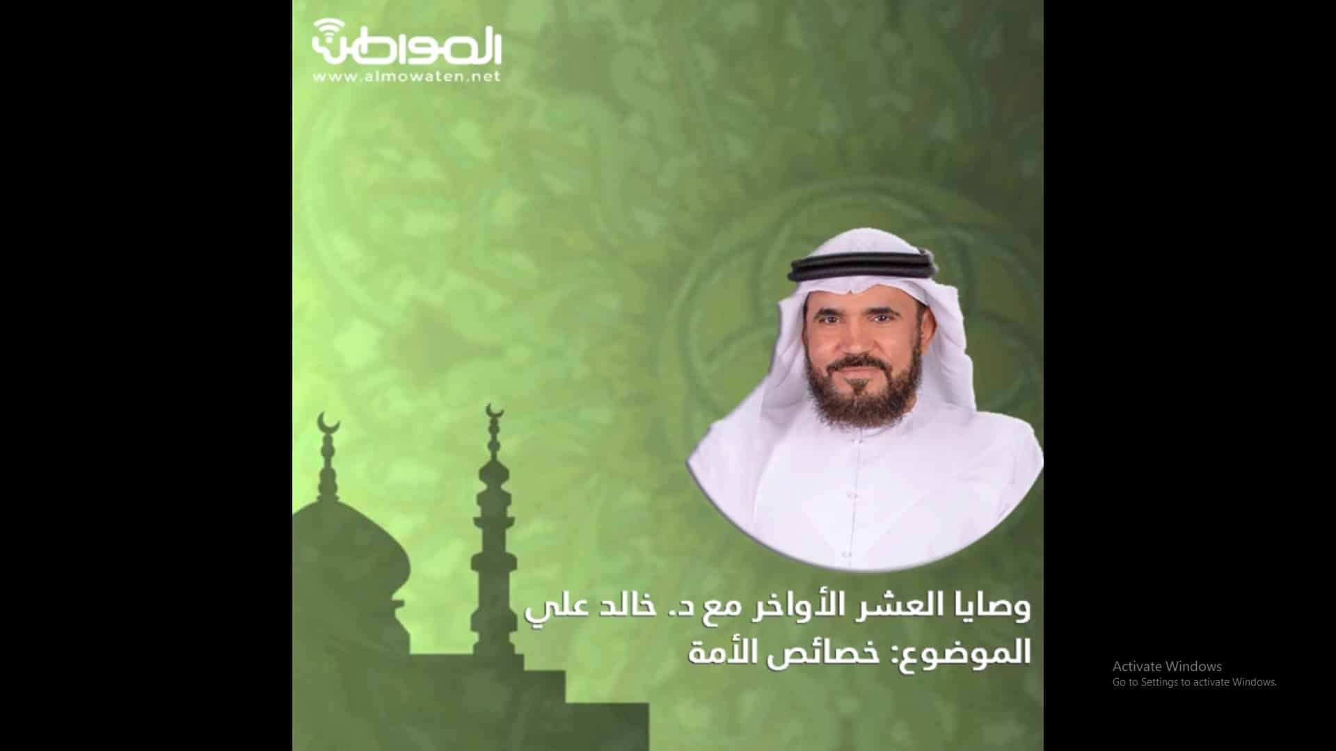 وقال الدكتور خالد علي: إن من خصاص الأمة أنها لا تجتمع على ضلالة أبدًا أو بدعة أو انحراف، وإن وقع بعضها أو أكثرها على ذلك بقي بعضها على الطريق المستقيم إلى قيام الساعة، وأيضًا أنها أمة وسطى فهي وسط في قضايا الاعتقاد والأخلاق وغير ذلك.