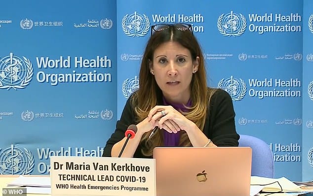 وقالت ماريا فان كيرخوف، مدير وحدة الأمراض الناشئة والأمراض الحيوانية المنشأ بمنظمة الصحة الدولية، خلال مؤتمر صحفي: من البيانات المتوفرة لدينا، يبدو أنه من النادر أن ينقل شخص حامل للفيروس دون ظهور أعراض عليه، العدوى إلى شخص آخر.