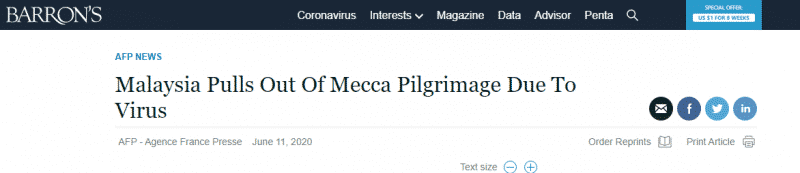 ويُذكر أن السعودية كانت قد علقت الحج والعمرة حتى إشعار آخر في محاولة لحفظ أراوح المسلمين من زوار البيت الحرام والمعتمرين وللحد من انتشار فيروس كورونا.