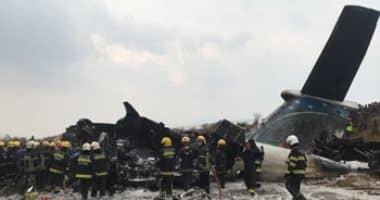 وأظهرت اللقطات التلفزيونية تصاعد دخان أسود كثيف من حطام الطائرة المحترق.