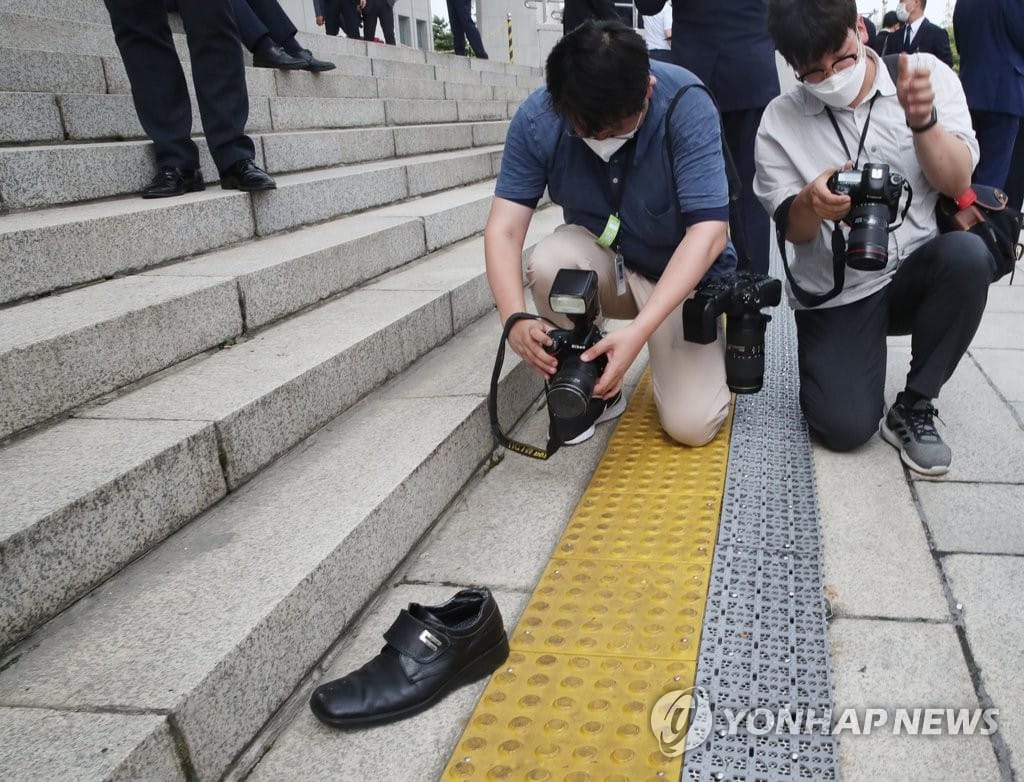وذكرت وسائل الإعلام أن الرجل يُدعى تشونغ، وخلع حذاءه وألقى به على الرئيس الكوري الجنوبي بعد خروجه من البرلمان، إلا أنه لم يصبه.
