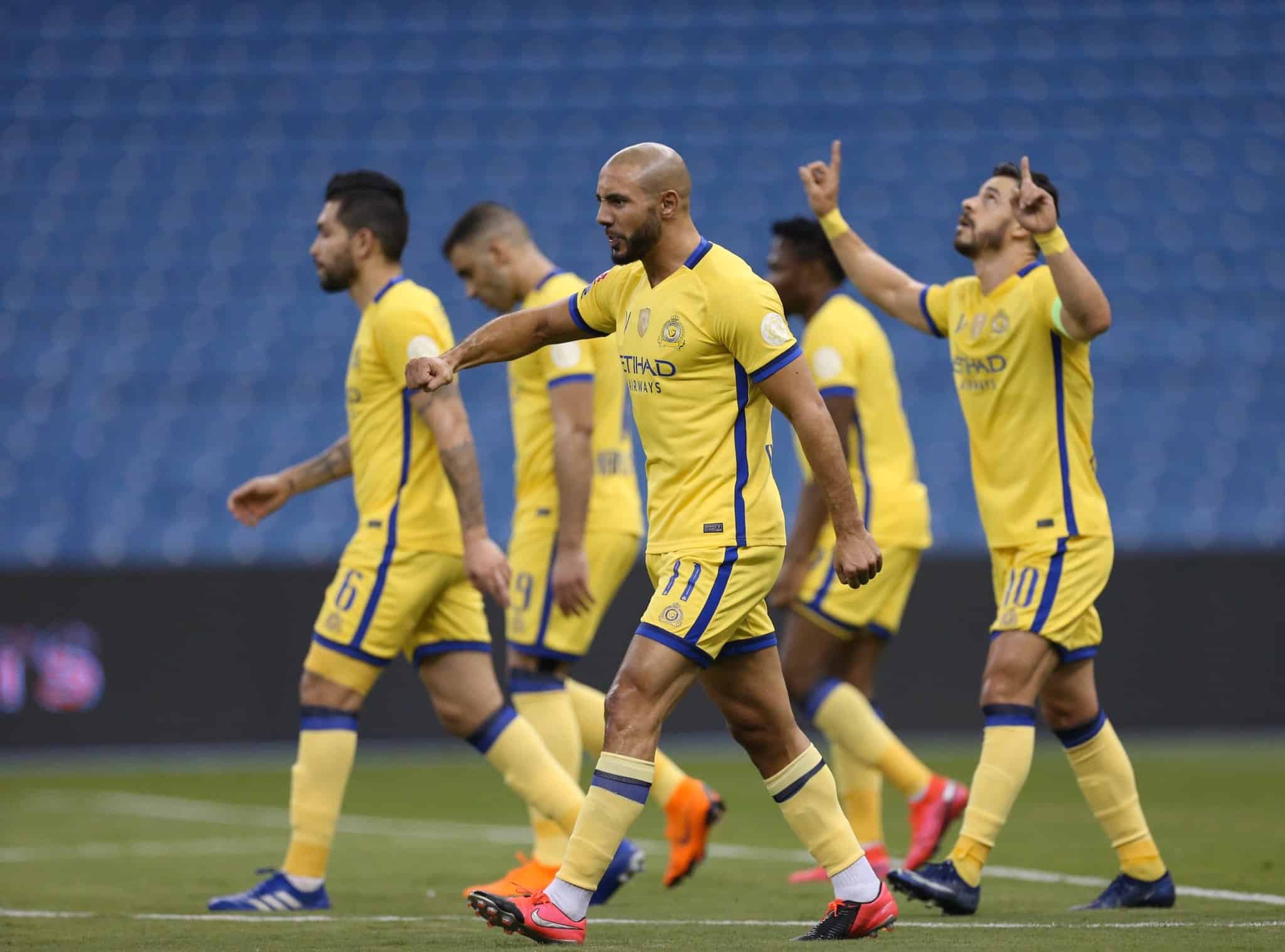 وتمكن جوليانو من تسجيل الهدف الرابع عند الدقيقة 43، قبل أن يحرز حمدالله الهدف الخامس في الدقيقة الرابعة من الوقت بدل الضائع، لينتهي الشوط الأول من المباراة بتقدم الأصفر بخماسية.