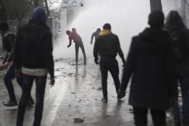 أطلقت الشرطة في جزيرة ليسبوس اليونانية الغاز المسيل للدموع اليوم على مهاجرين ألقوا حجارة خلال تظاهرة للمطالبة بالحصول على مأوى بعدما احترق مخيم موريا.