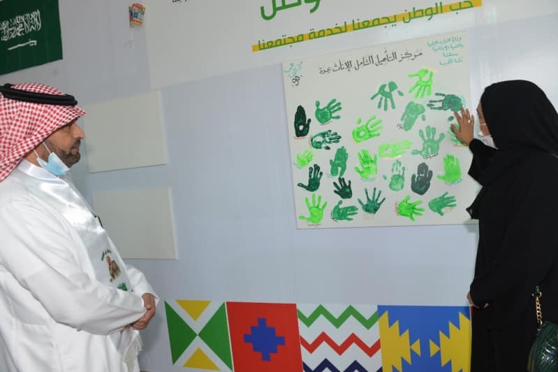 وشهدت الفعالية تنفيذ جدارية بطول 90 مترًا احتفاءً باليوم الوطني، فيما استعرض الحضور المجسمات الجمالية التي شاركت بها الجمعية النسائية الأولى، والتي تمثل نماذج من إبداعات الحرفيات السعوديات للتعبير عن هذه المناسبة الوطنية، وتستمر المبادرة لمدة 3 أيام بمشاركة عدد من الفنانين والفنانات والمواطنين والمقيمين، وتتضمن فقراتها مسابقة لأفضل صورة وأفضل رسمة معبرة عن الحب والاعتزاز بالوطن.