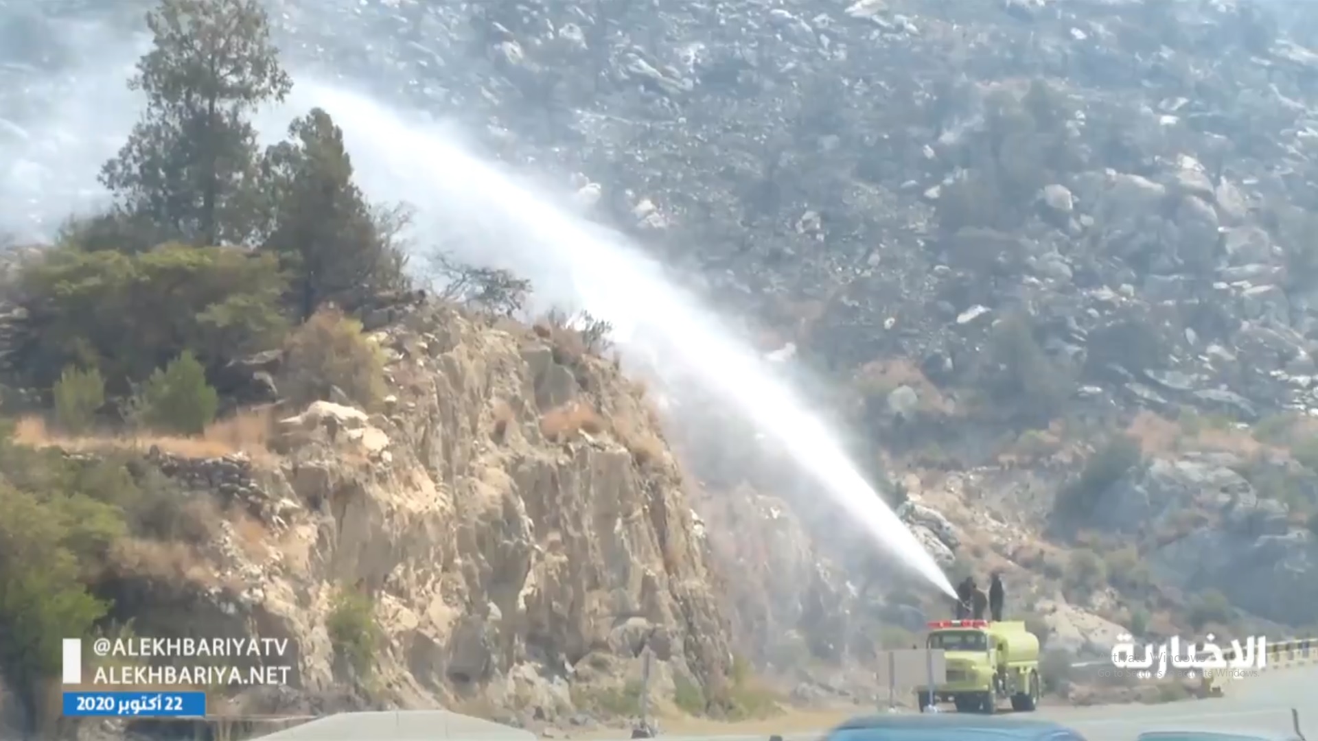 نشرت قناة الإخبارية لقطات مباشرة وخاصة لمواصلة فرق الدفاع المدني في منطقة عسير إخماد حريق تنومة.