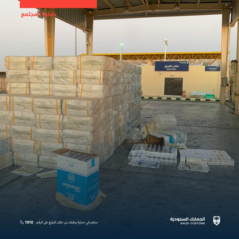أعلنت الجمارك السعودية إحباط عملية تهريب كميات من السجائر داخل شاحنة واردة عبر إحدى المنافذ البرية.