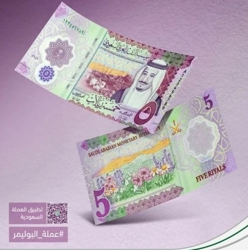 وأوضحت مؤسسة النقد، أنه روعي في تصميم وألوان فئة الخمسة ريالات من مادة البوليمرات لتكون مماثلة لتصميم وألوان الفئة الورقية نفسها المتداولة حاليًا المصنوعة من القطن، مع مراعاة اختلاف تقنيات الصناعة والمواصفات الفنية، والعلامات الأمنية الخاصة بهذه الفئة، مبينة أنه سيتم طرح الكميات الأولية للفئة الجديدة للتداول اعتبارًا من يوم الاثنين 1442/02/18هـ الموافق 5/10/2020م، وذلك جنبًا إلى جنب مع فئة خمسة الريالات المتداولة حاليًا، وباقي فئات الإصدار السادس من الأوراق النقدية المتداولة، بصفتها عملة رسمية قانونية.