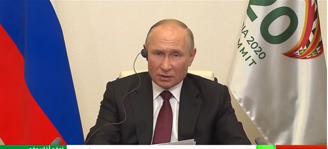 وقال بوتين في كلمته التي ألقاها في قمة العشرين التي عقدت في الرياض عن بعد اليوم برئاسة خادم الحرمين الشريفين الملك سلمان بن عبدالعزيز إن الجائحة تسببت في أزمة اقتصادية غير مسبوقة في العالم منذ الكساد العظيم.