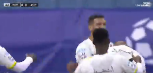 وسدد العبود كرة قوية على يسار الحارس حبيب الوطيان حارس الهلال بالدقيقة العشرين، وذلك بعد تمريرة أرضية متقنة من اللاعب سعود عبدالحميد.