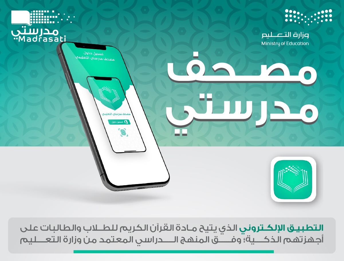 أطلقت وزارة التعليم تطبيق مصحف مدرستي وهو عبارة عن تطبيق إلكتروني يتيح مادة القرآن الكريم للطلاب والطالبات على أجهزتهم الذكية.