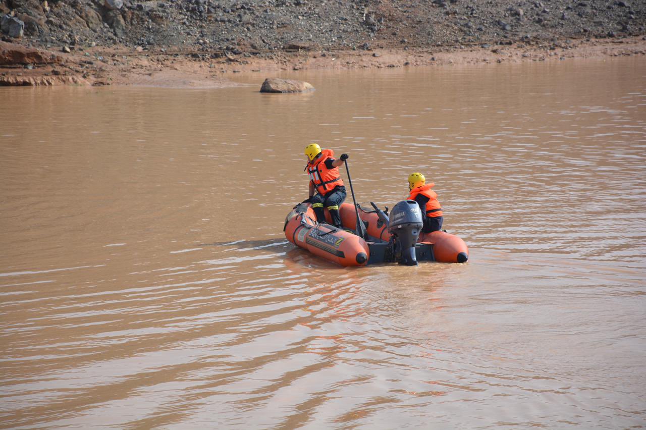 ونشر المدني صورًا تبين عملية البحث عن جثمان الشاب والعثور عليه.