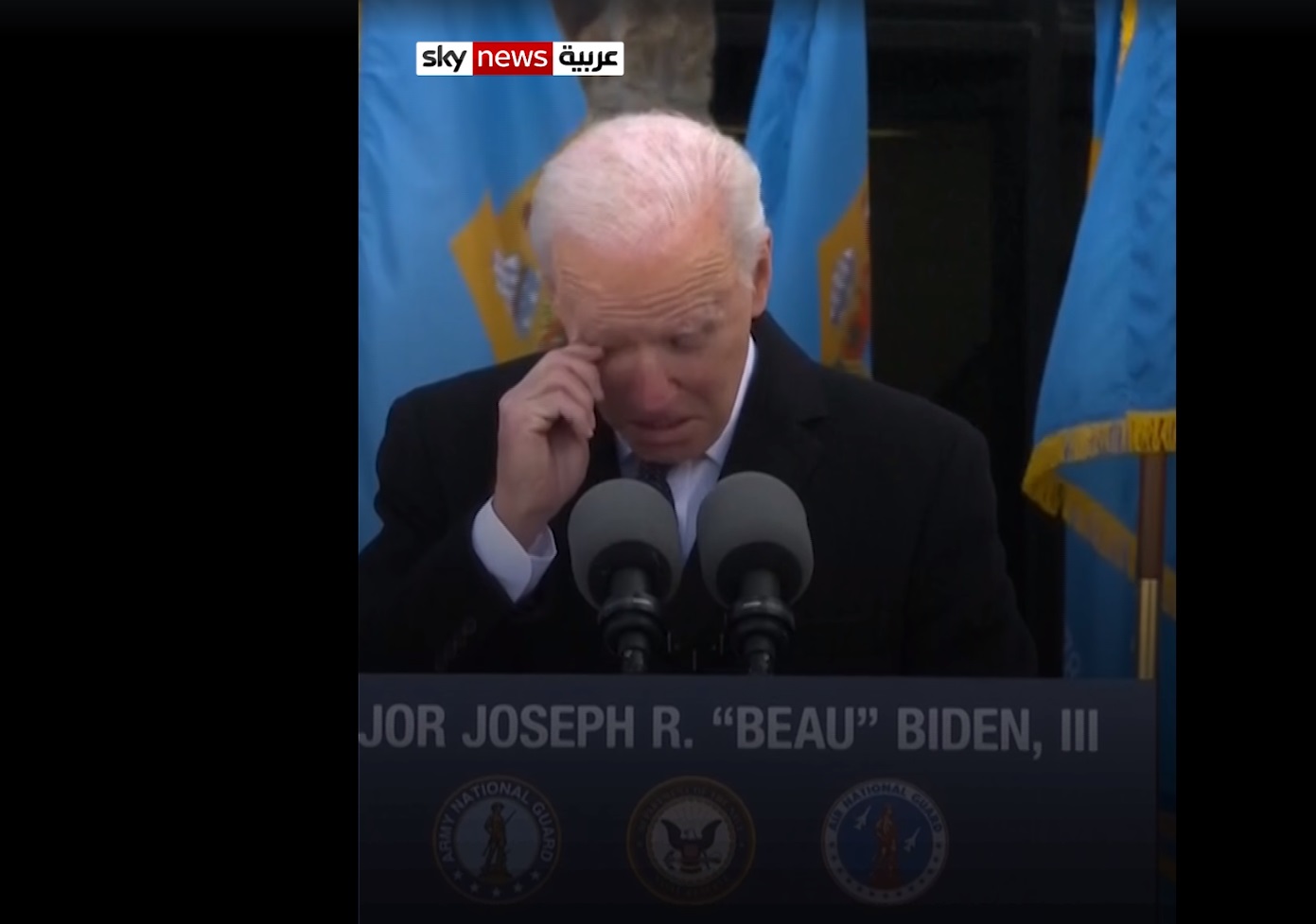 انهمرت الدموع من عيني الرئيس الأمريكي المنتخب جو بايدن، في كلمته الأخيرة عشية حفل التنصيب، في خطاب مؤثر تطرق فيه لأمور إنسانية تخصه.