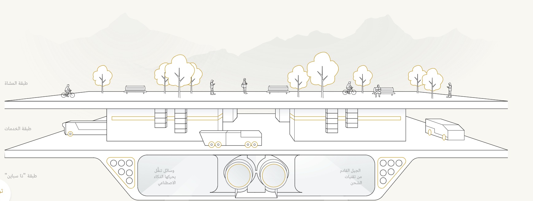 وستُدمَج المرافق والخدمات، والنقل العام فائق السرعة، والنقل اللوجستي، والبنية التحتية الرقمية – بكل سلاسة، بما يضمن عدم التأثير على المعيشة، كما سيتيح هذا التصميم الفريد التطوير المستمر، لاسيما من الناحية التقنية دون إزعاج للسكان.