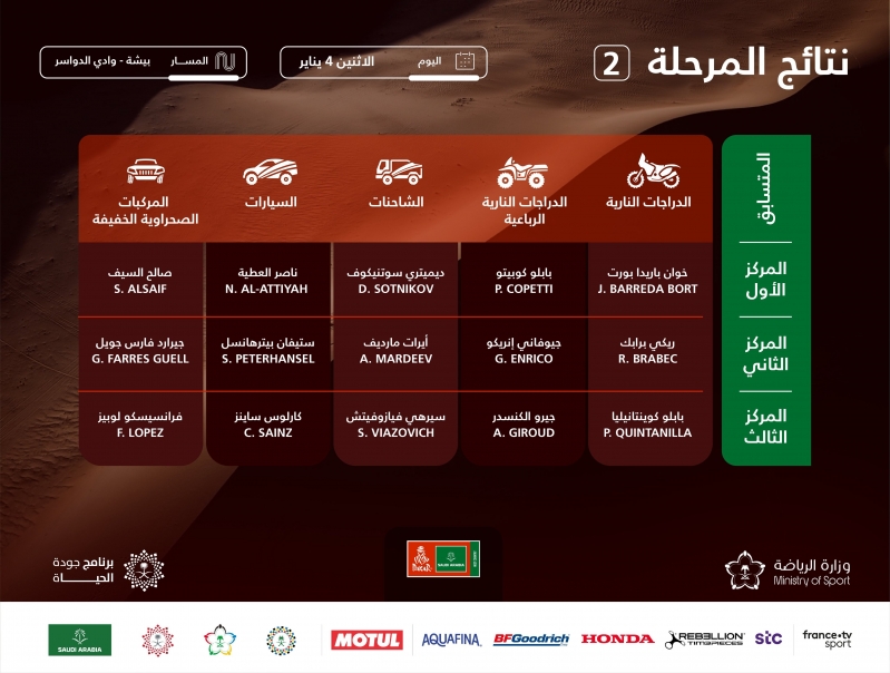 نتائج المرحلة الثانية من داكار السعودية 2021