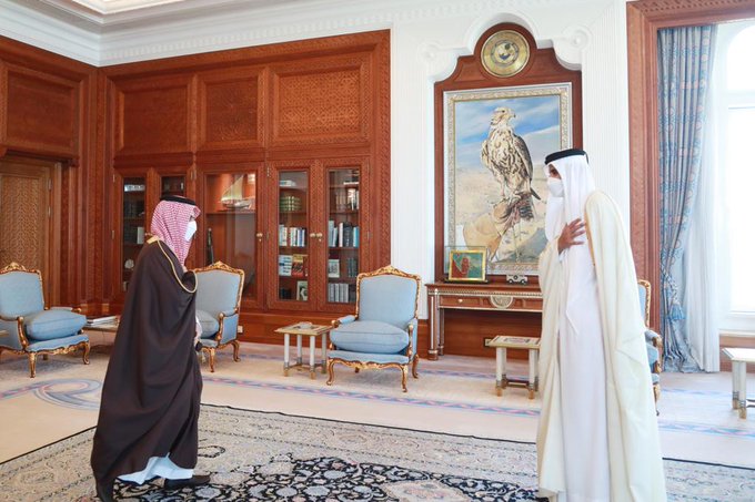 ونقل سمو وزير الخارجية خلال الاستقبال، تحيات خادم الحرمين الشريفين الملك سلمان بن عبد العزيز آل سعود، وصاحب السمو الملكي الأمير محمد بن سلمان بن عبد العزيز ولي العهد نائب رئيس مجلس الوزراء وزير الدفاع، لأخيهما سمو أمير دولة قطر، الذي حمله نقل تحياته وتقديره لهما – حفظهما الله – ، ولحكومة وشعب المملكة العربية السعودية.
