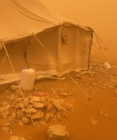 اجتاحت عاصفة رملية في الساعات الأولى من صباح اليوم الجمعة عددًا من مناطق المملكة الشمالية خاصة الحدود الشمالية والجوف، كما تتزايد سرعة الرياح والغبار الذي أدى إلى تدني الرؤية.