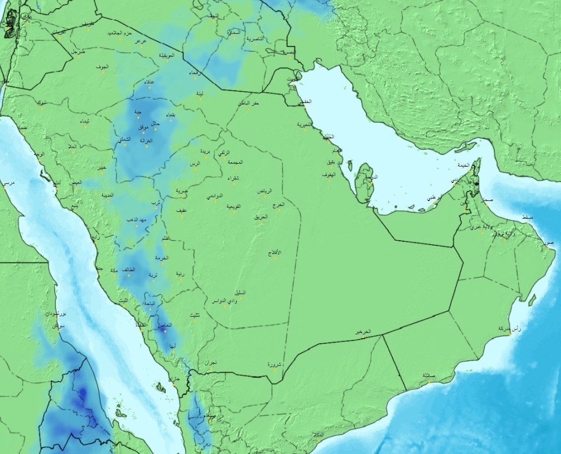 وكان المركز الوطني للأرصاد توقع أن تكون السماء غائمة جزئيًّا، غدًا، قد تتخللها سحب ممطرة، تصحب برياح نشطة على أجزاء من مناطق (المدينة المنورة، حائل، القصيم والحدود الشمالية)، كما تنشط الرياح السطحية المثيرة للأتربة والغبار على أجزاء من مناطق الرياض، الجوف، الحدود الشمالية.