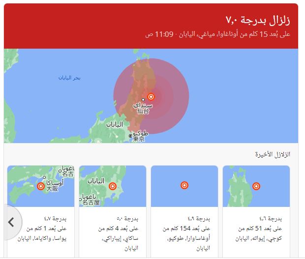وقبل ذلك بشهر وتحديدًا في 13 فبراير الماضي حدث زلزال مدمر، تحت البحر شمال شرق اليابان ووصلت قوته إلى 7 درجات، فيما وصلت تداعياته إلى العاصمة طوكيو، حيث شعر سكانها به ولم توجه السلطات تحذيرا بشأن حصول تسونامي، وفق ما أوردت “فرانس برس”.