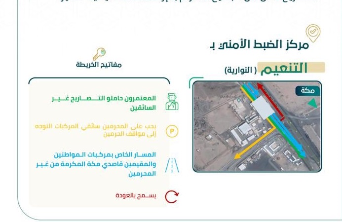 كشفت القوات الخاصة لأمن الطرق عن إرشادات مسارات دخول المعتمرين حاملي تصاريح العمرة عبر مركز الضبط الأمني بالتنعيم.