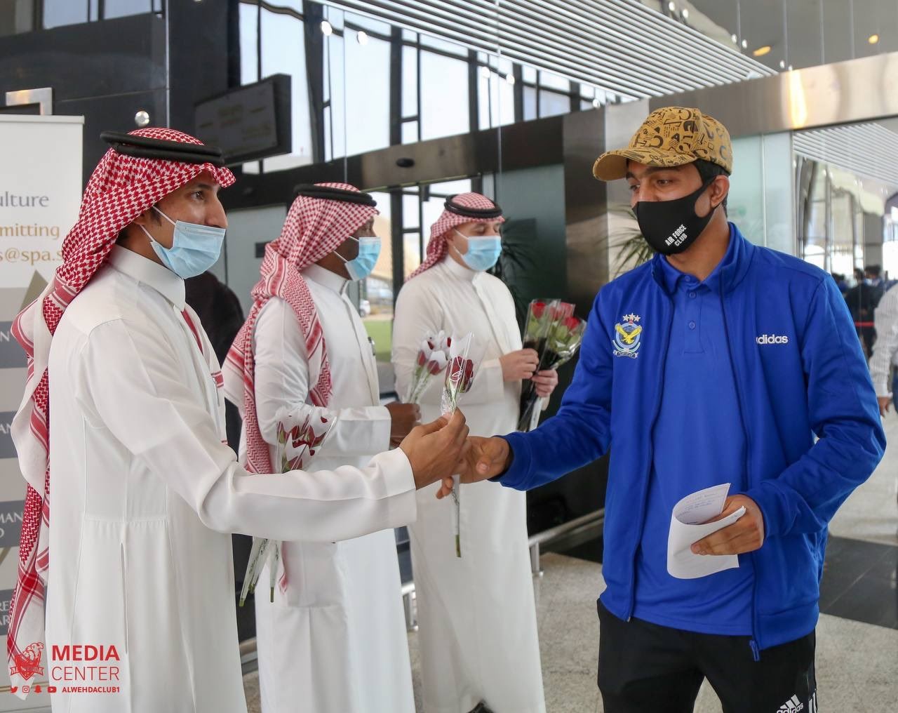 وكان في استقبال البعثة لدى وصولها، قائد المنطقة الغربية (وزارة الدفاع) اللواء الطيار الركن أحمد بن علي الدبيس، يرافقه العقيد الطيار الركن عبدالعزيز العجاجي، والرائد عبدالله البقمي، بجانب عضو مجلس إدارة الاتحاد السعودي، عبدالله كبوها، وممثلين النادي، يتقدمهم مدير الفريق الأول، خالد الحازمي ومدير العمليات إبراهيم جوني.