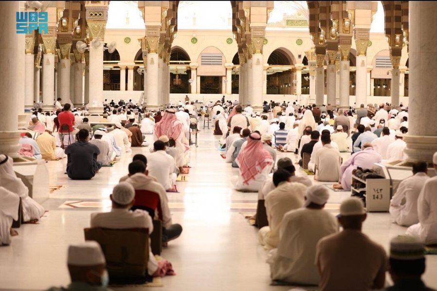 أدى قاصدو المسجد النبوي اليوم، صلاة أول جمعة في رمضان المبارك ١٤٤٢هـ في أجواء روحانية ونفوس مطمئنة مفعمة بالأيمان شاكرين الله – عز وجل – على ما أنعم عليهم من نعمة الأمن والأمان والراحة والاستقرار، سائلين الله – عز وجل – أن يرفع هذا الوباء عن المسلمين في مشارق الأرض ومغاربها.