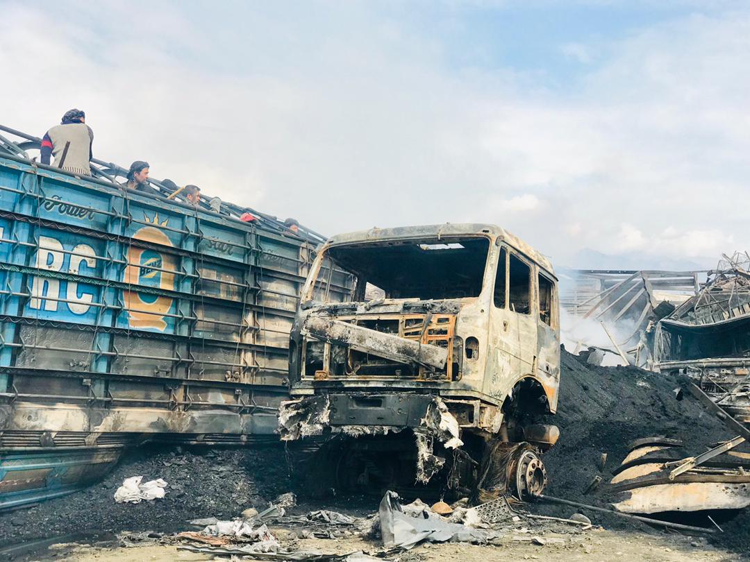 Update – "Dozens" of fuel tankers were burnt in tonight's major fire in Karez-e Mir area in Shakardara district, Kabul province, the Interior Ministry's spokesman Tariq Arian says.