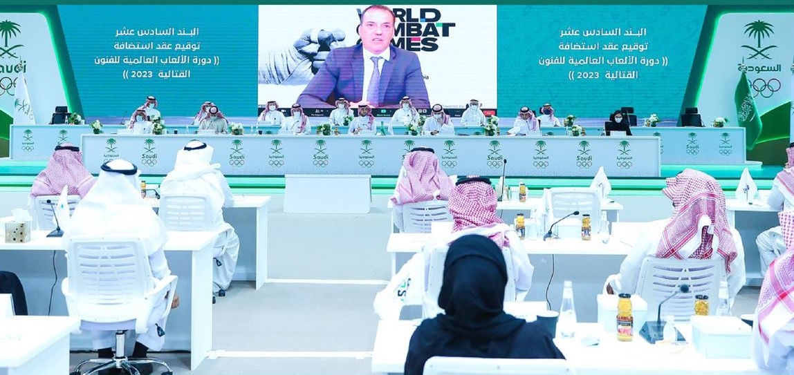 ووقع رئيس اللجنة الأولمبية العربية السعودية، الأمير عبدالعزيز بن تركي الفيصل عقد استضافة مع نائب رئيس الجمعية العالمية للاتحادات الدولي “GAISF”، ستيفن فوكس تُمنح بموجبها الرياض حق تنظيم دورة الألعاب العالمية للفنون القتالية 2023.