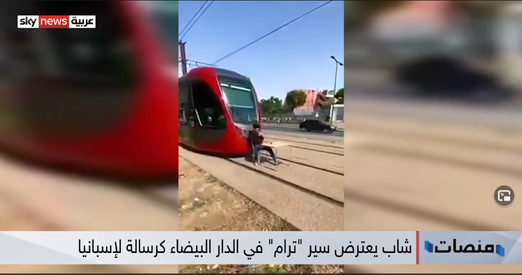 أظهر مقطع فيديو متداول لحظات حاسمة في حياة شاب مغربي اعترض الترام في الدار البيضاء.