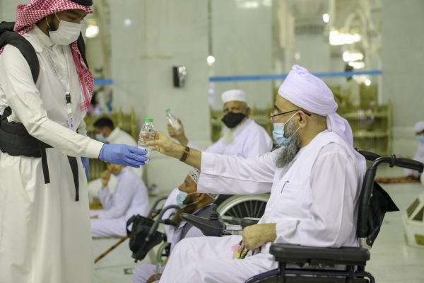وتم إرشاد ذوي الإعاقة من الساحات إلى الموقع المخصص لهم في توسعة الملك فهد الدور الأول باب (64) ومصلى توسعة الملك عبدالله أمام باب (123)، ودخولهم بدون تزاحم ومراعاة التباعد بينهم بالمصلى المخصص وتوفير كافة الإجراءات الوقائية لهم كالكمامات والمعقمات وتعقيم المصليات قبل وبعد كل فرض وتعقيم العربات أثناء الدخول والخروج، وكذلك وتوعية ذوي الإعاقة البصرية بالإجراءات الاحترازية مكتوبة بطريقة برايل ووضعت الإدارة أفياش شحن داخل المصلى للعربات الكهربائية لذوي الإعاقة الحركية.