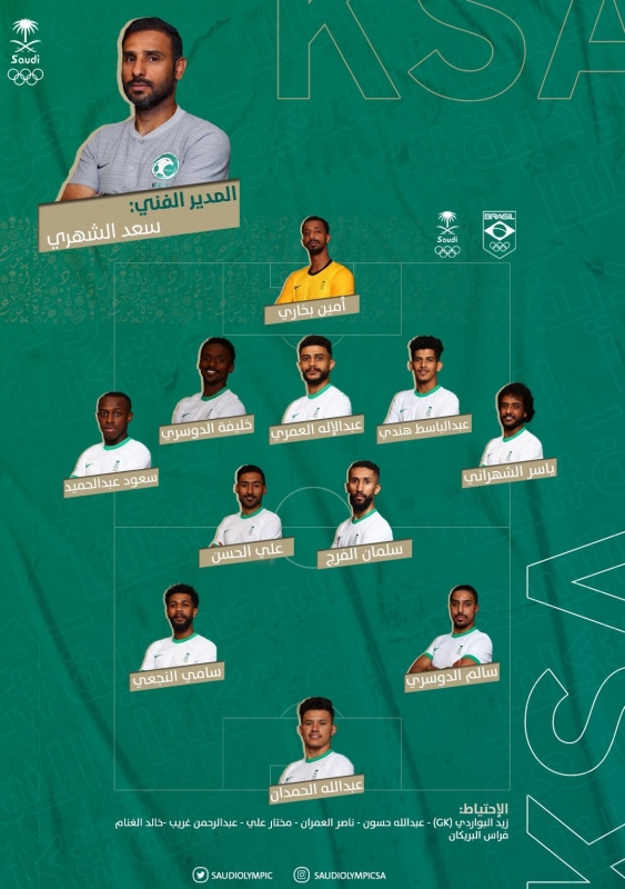 أعلن مدرب المنتخب السعودي تحت 23 عامًا، سعد الشهري عن تشكيلة الأخضر لمباراة البرازيل المقرر إقامتها، بعد قليل، في دورة الألعاب الأولمبية “أولمبياد طوكيو 2020”.