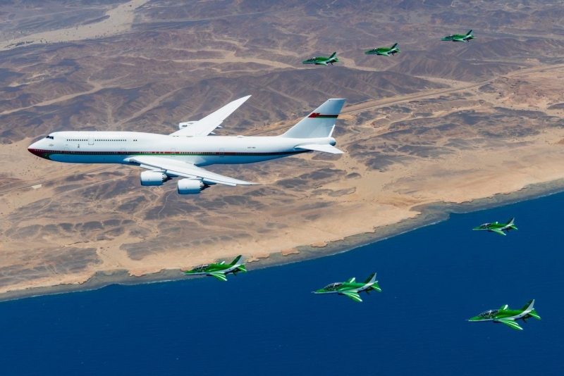 شاركت طائرات القوات الجوية الملكية السعودية في استقبال سلطان عمان، هيثم بن طارق في مدينة نيوم.