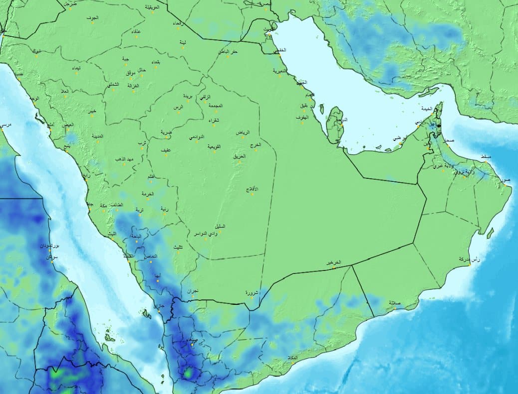 وتوقع المركز الوطني للأرصاد في تقريره عن حالة الطقس اليوم في السعودية هطول أمطار رعدية مصحوبة برياح نشطة على المرتفعات من مناطق (نجران، جازان، عسير، الباحة) قد تمتد إلى مرتفعات منطقة مكة المكرمة وتأثر الأجزاء الساحلية لمنطقتي جيزان وعسير بسحب ركامية رعدية في حين تتأثر الأجزاء الشرقية من المرتفعات الجنوبية الغربية ومنطقة نجران وأجزاء من منطقة الرياض بالعوالق الترابية وطقس شديد الحرارة على المنطقة الشرقية.