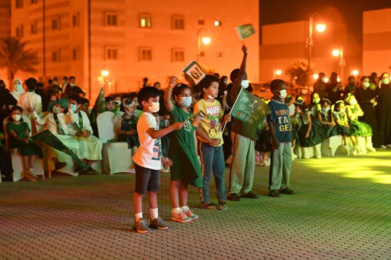 وقال عميد شؤون الطلاب بالجامعة ماجد بن صلاح بلعلا: إن الاحتفالية اشتملت على لوحات إنشادية ومسرحية وطنية وأوبريت وطني وفيلم وثائقي من إنتاج إدارة العلاقات العامة والإعلام وبرامج منوعة لأطفال وهدايا للحضور، وذلك وسط حضور من المجتمع المحلي وتواجد للجهات الأمنية.
