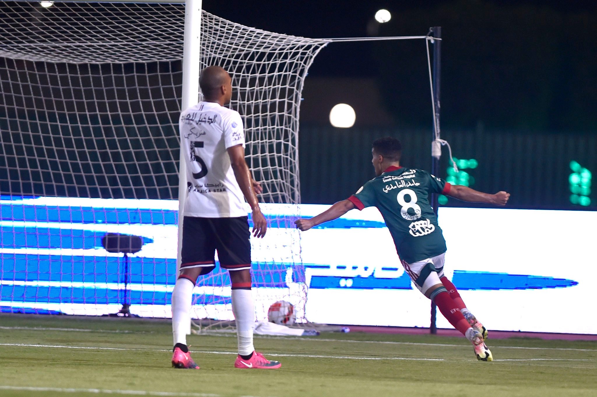 وانتفض لاعبو الفريق الأول لكرة القدم بنادي الرائد بعد الهدف، وتمكن المغربي كريم البركاوي من تسجيل التعادل عند الدقيقة 24، واستمرت المحاولات بحثًا عن إحراز هدف جديد، ولكن دون جدوى، لتنتهي أحداث الشوط الأول بالتعادل الإيجابي.