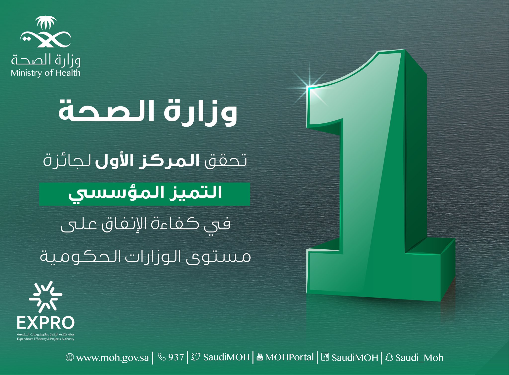 حققت وزارة الصحة “المركز الأول” بين الوزارات و”المركز الثاني” بين الجهات الحكومية في التقييم العام للنصف الثاني من عام 2021 لبرنامج “ركائز استدامة كفاءة الإنفاق” الذي تنفذه هيئة كفاءة الإنفاق والمشروعات الحكومية.