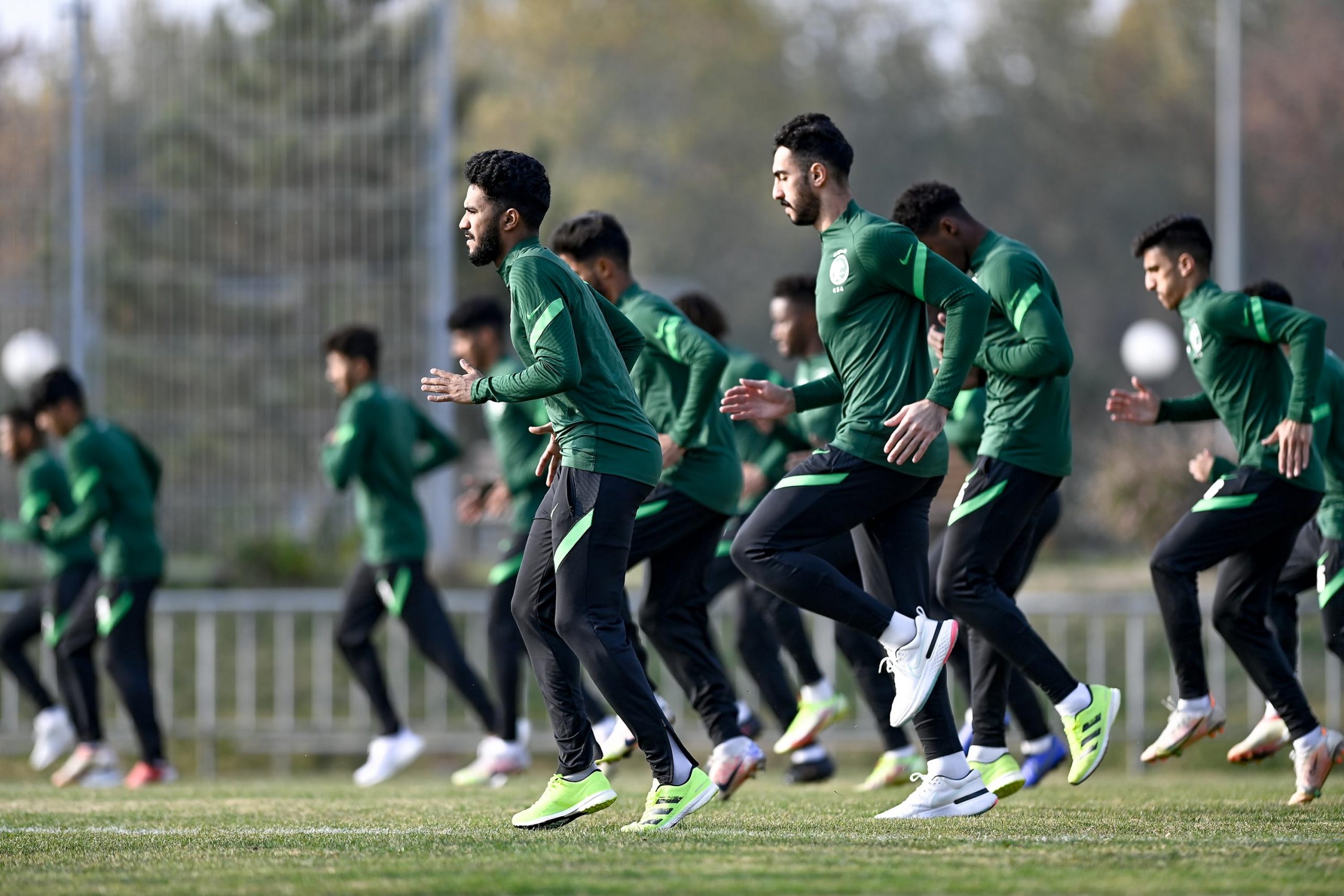 وأجرى لاعبو الأخضر تدريباتهم على الملعب الرديف لملعب نادي بونيودكور، وقسم الشهري خلالها المنتخب إلى مجموعتين، طبقت مجموعة مناورة مصغّرة.