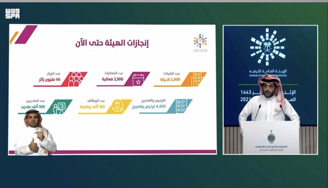 وقال آل الشيخ خلال المؤتمر الصحفي الذي عقد اليوم إن عدد الشركات المشاركة في فعاليات الهيئة حتى الآن تجاوز 2000 شركة فيما تجاوز عدد الفعاليات 2500 فعالية زارها أكثر من 75 مليون شخص، فيما بلغ عدد التراخيص والتصاريح 4400 وبلغ عدد الوظائف 100 ألف وظيفة ومثلهم عدد المتدربين.