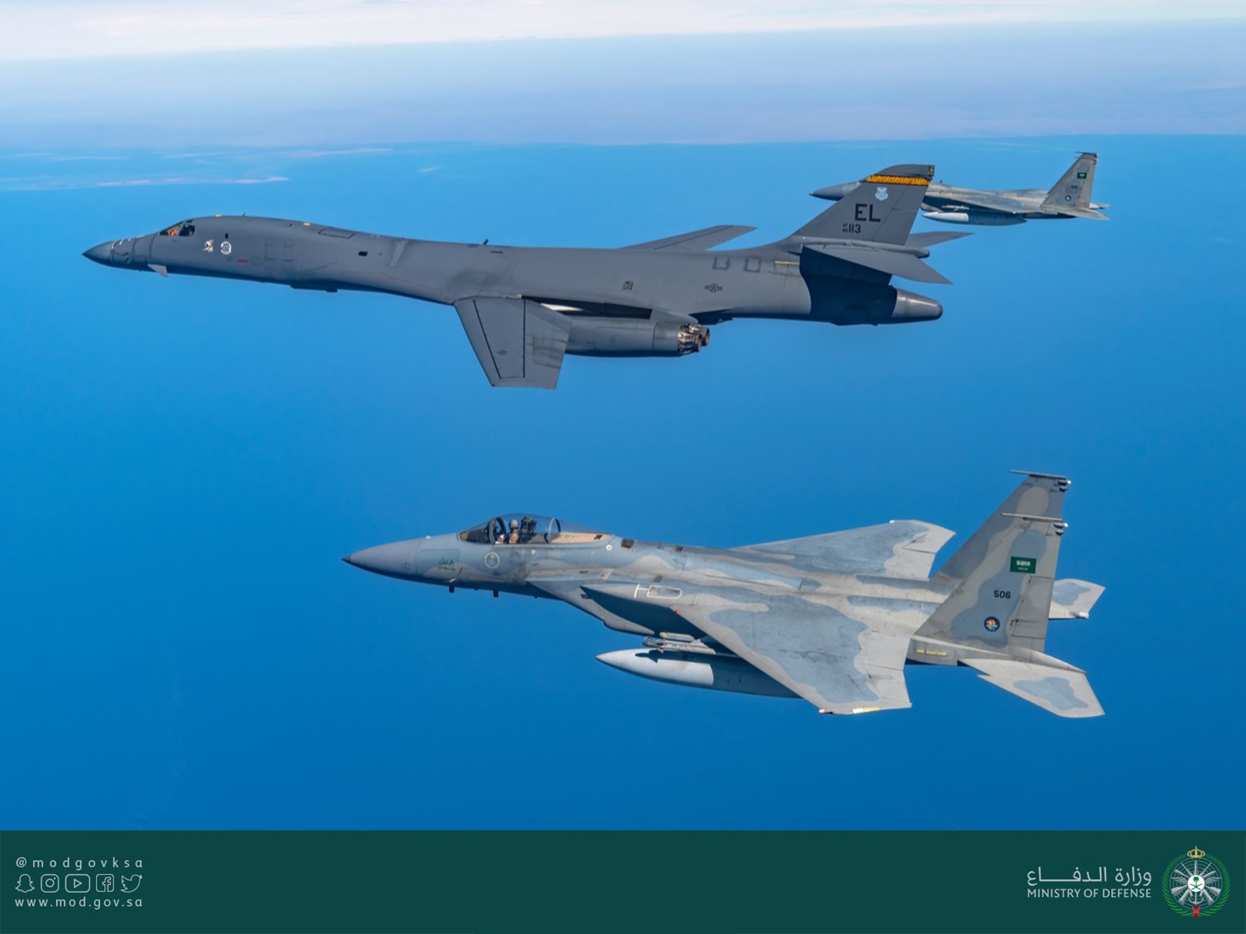 أتمت القوات الجوية الملكية السعودية والقوات الجوية الأمريكية تمرينًا ثنائيًّا، يوم أمس السبت، شاركت فيه مقاتلات (ف-15 سي) التابعة للقوات الجوية الملكية السعودية، والقاذفات الإستراتيجية (B-1) التابعة للقوات الجوية الأمريكية.