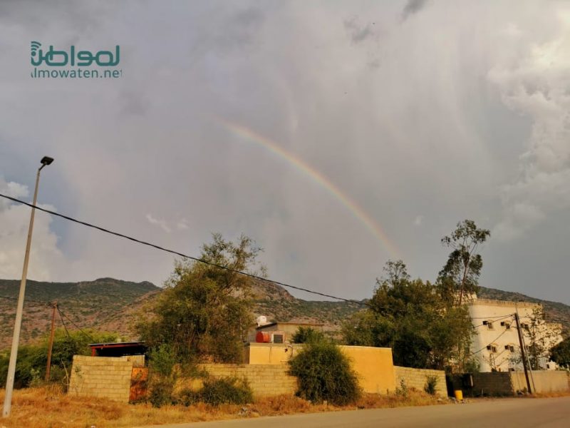 ورصدت عدسة ‘المواطن ” قوس قزح وهو يزين سماء محافظة العارضة، حيث ارتسمت ألوان قوس قزح في سماء المحافظة في أكثر من مكان بشكل رائع وفي صورة جمالية بديعة.