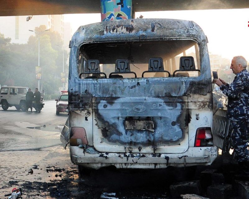 نشرت الوكالة السورية للأنباء “سانا” مقطع فيديو يظهر حافلة تابعة للجيش السوري استهدفت بعبوات ناسفة وسط العاصمة دمشق عند جسر الرئيس، ما أدى إلى وقوع قتلى وجرحى.