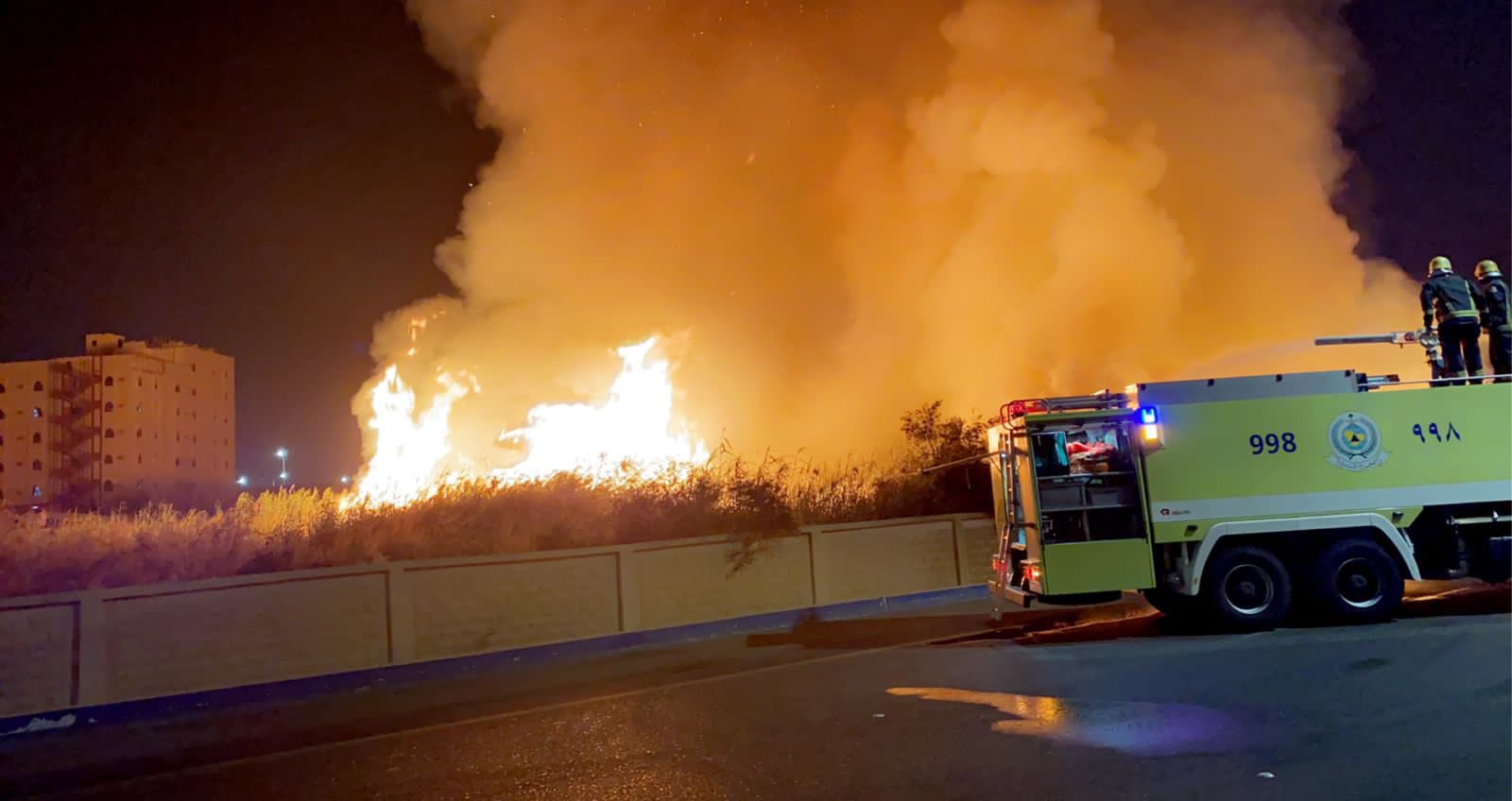 أخمد الدفاع المدني في المدينة المنورة حريقًا اندلع في أشجار وحشائش داخل سور بحي النسيم.