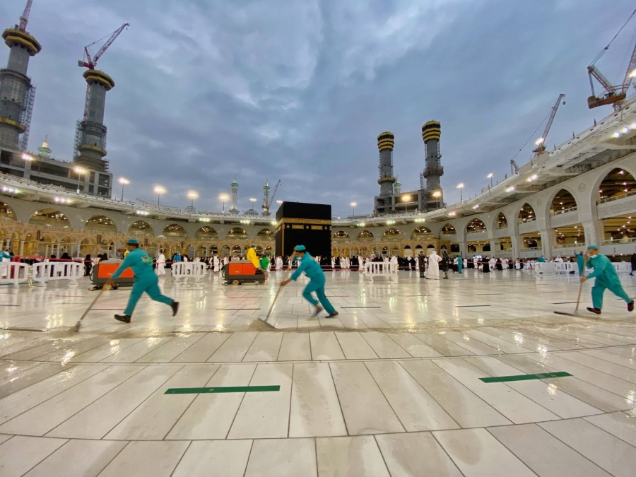 وأوضح وكيل الرئيس العام للخدمات والشؤون الميدانية وتحقيق الوقاية البيئية محمد بن مصلح الجابري، أنه قد تم تهيئة صحن المطاف والمصليات والمداخل والمخارج فور وقوف الأمطار، بتكثيف الجهود لإزالة آثار الأمطار، من أجل المحافظة على سلامة قاصدي المسجد الحرام، ليؤدوا مناسكهم بكل يسر وسهولة، مضيفاً بأن الوكالة قامت بتوزيع معدات شفط المياه ومعدات الغسيل داخل الحرم وخارجه للمساهمة الفعالة في عملية التجفيف، حيث بلغ عدد الآليات والمعدات قرابة ٤٧٠ آلة ومعدة في صحن المطاف والساحات الخارجية وسطح الحرم.