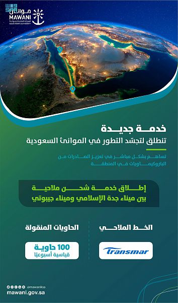 وتُعد هذه الخطوة استكمالاً واستمراراً للمبادرات والشراكات الإستراتيجية التي أطلقتها “موانئ” مع كبرى شركات الخطوط الملاحية العالمية، ومواصلةً لخدمات الشحن الملاحية التي عملت على إضافتها خلال الفترة الماضية، بهدف زيادة كميات المسافنة في الموانئ السعودية وتعزيز التبادل التجاري بين المملكة والعالم، وذلك ضمن مستهدفات الإستراتيجية الوطنية للنقل والخدمات اللوجستية وفق رؤية المملكة 2030، كما يدعم إطلاق هذه الخدمة الجديدة مع جيبوتي، خطط توسع المملكة في ربط موانئها بموانئ ودول شرق أفريقيا وتعزيز التبادل التجاري معها.