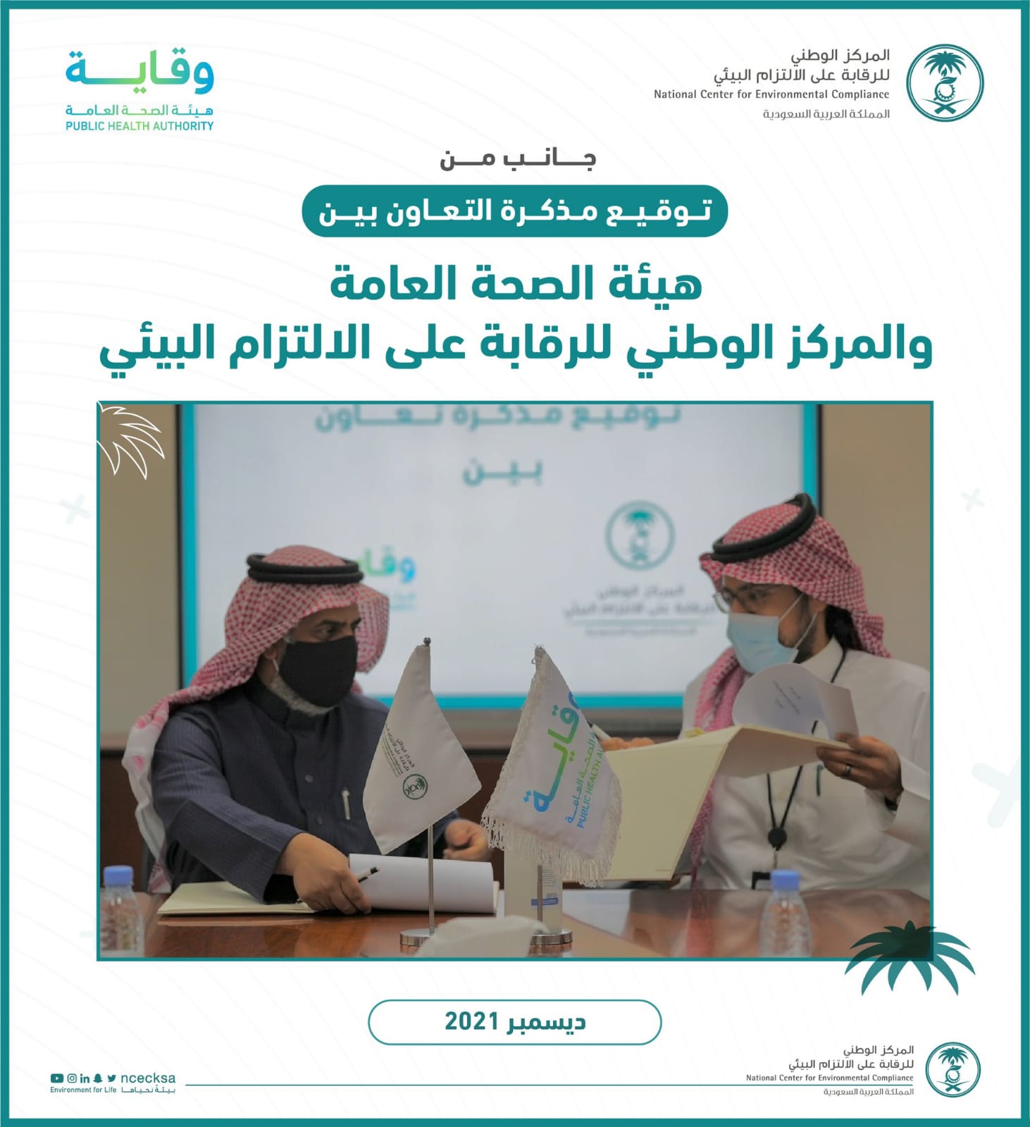 وقّع المركز الوطني للرقابة على الالتزام البيئي اليوم، مذكرة تعاون مع هيئة الصحة العامة (وقاية) في مقر المركز الرئيس بمنطقة الرياض.
