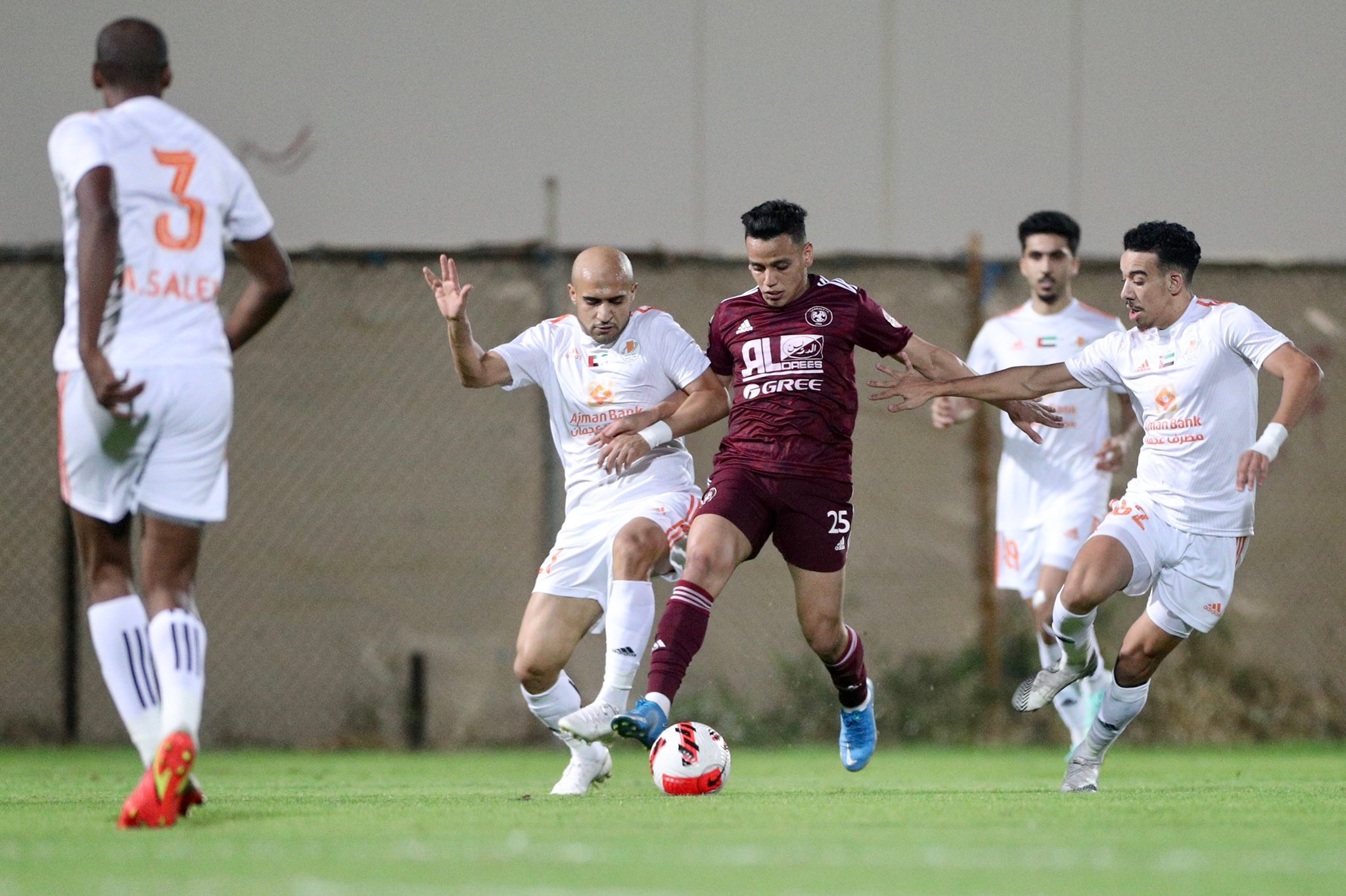 وأُقيمت مباراة الفيصلي وعجمان على ملعب نادي النصر الإماراتي، في إطار استعدادات عنابي سدير لاستئناف منافسات الموسم الرياضي الحالي.