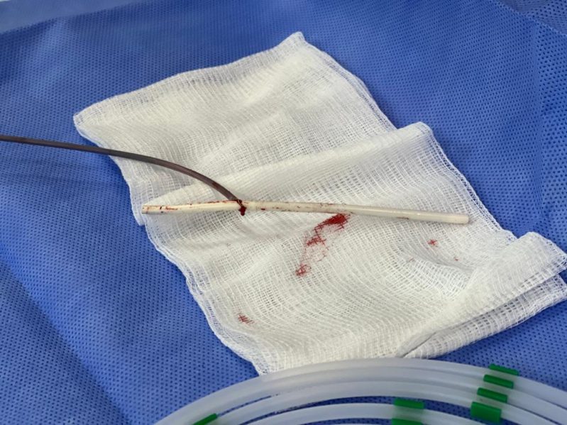 سجلت مدينة الملك سعود الطبية ممثلة بفريق متخصص من قسم الأشعة التداخلية إنجازًا طبيًا جديدًا، وذلك حينما نجح الفريق المختص وبمساندة من أقسام الأورام والتخدير من استخراج جزء يبلغ طوله قرابة 4 سم من قسطرة العلاج الكيماوي (Porta cath) عالقة لمدة قاربت الشهر في التجويف الأيمن من القلب لطفلة تبلغ 15 عاماً.