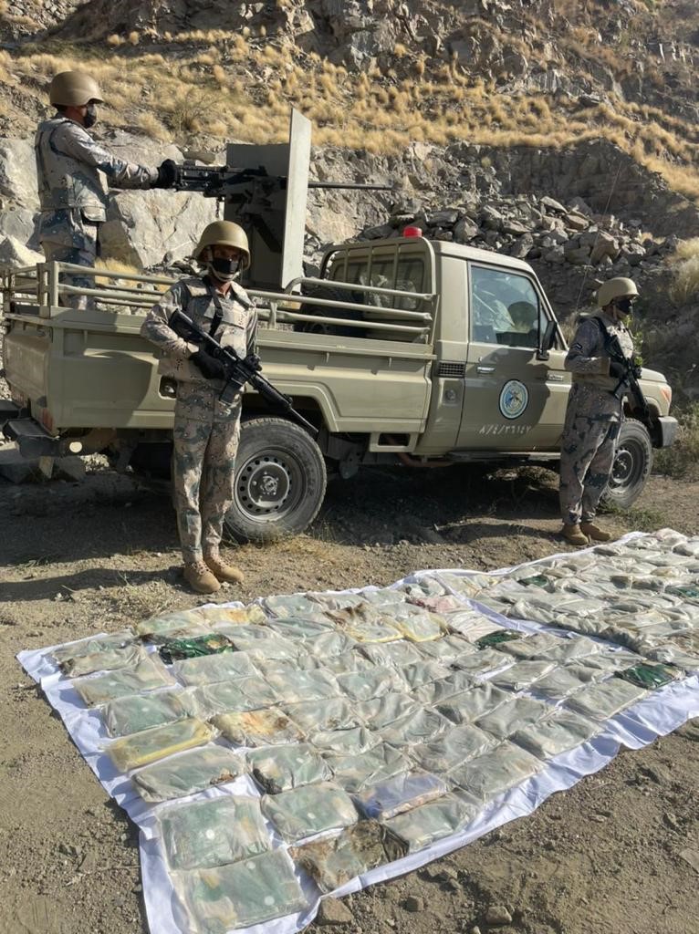 كما تم إحباط محاولات تهريب (627) كيلو جراماً من مادة الحشيش المخدر، و(28) طناً و(946) كيلوجراماً من مادة القات المخدر، عبر الحدود الجنوبية للمملكة.