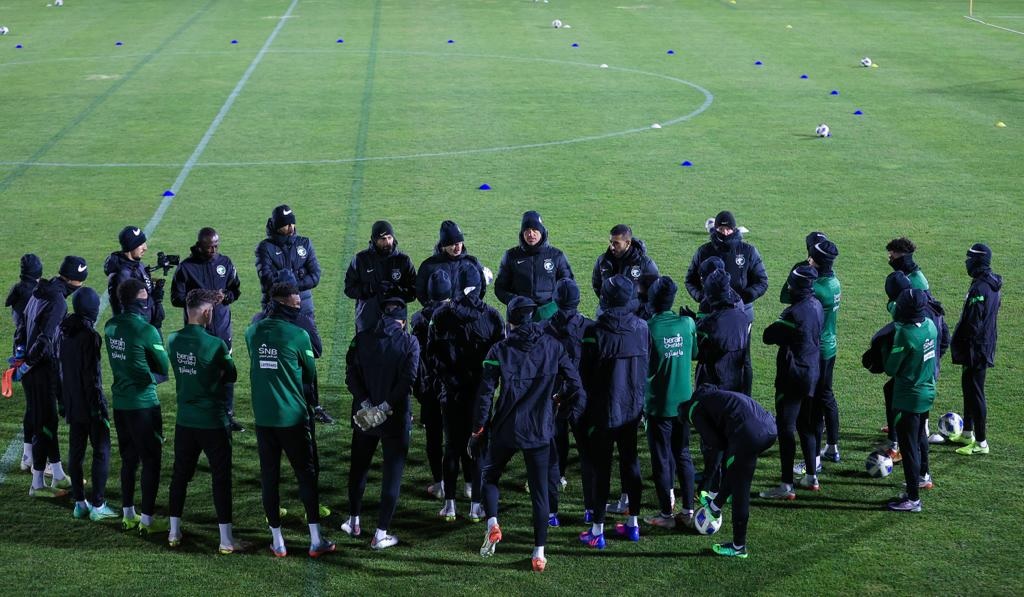 وأجرى لاعبو الأخضر حصة تدريبية على “رديف استاد سايتاما”، بدأت بتمارين الإحماء ثم تمرين التمرير بعدها تمرين الاستحواذ، قبل أن يختتم رينارد المران بتقسيم اللاعبين إلى مجموعتين.